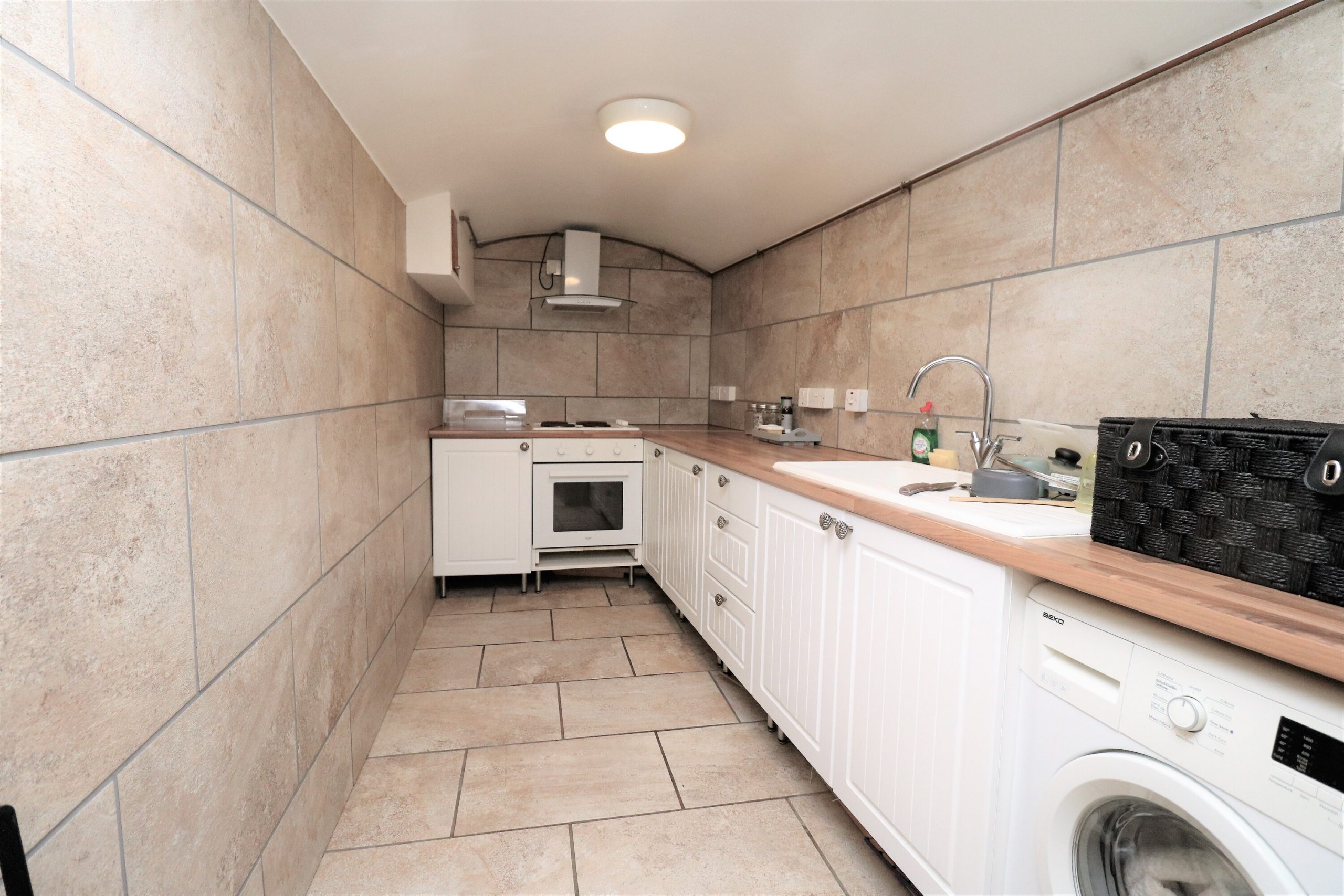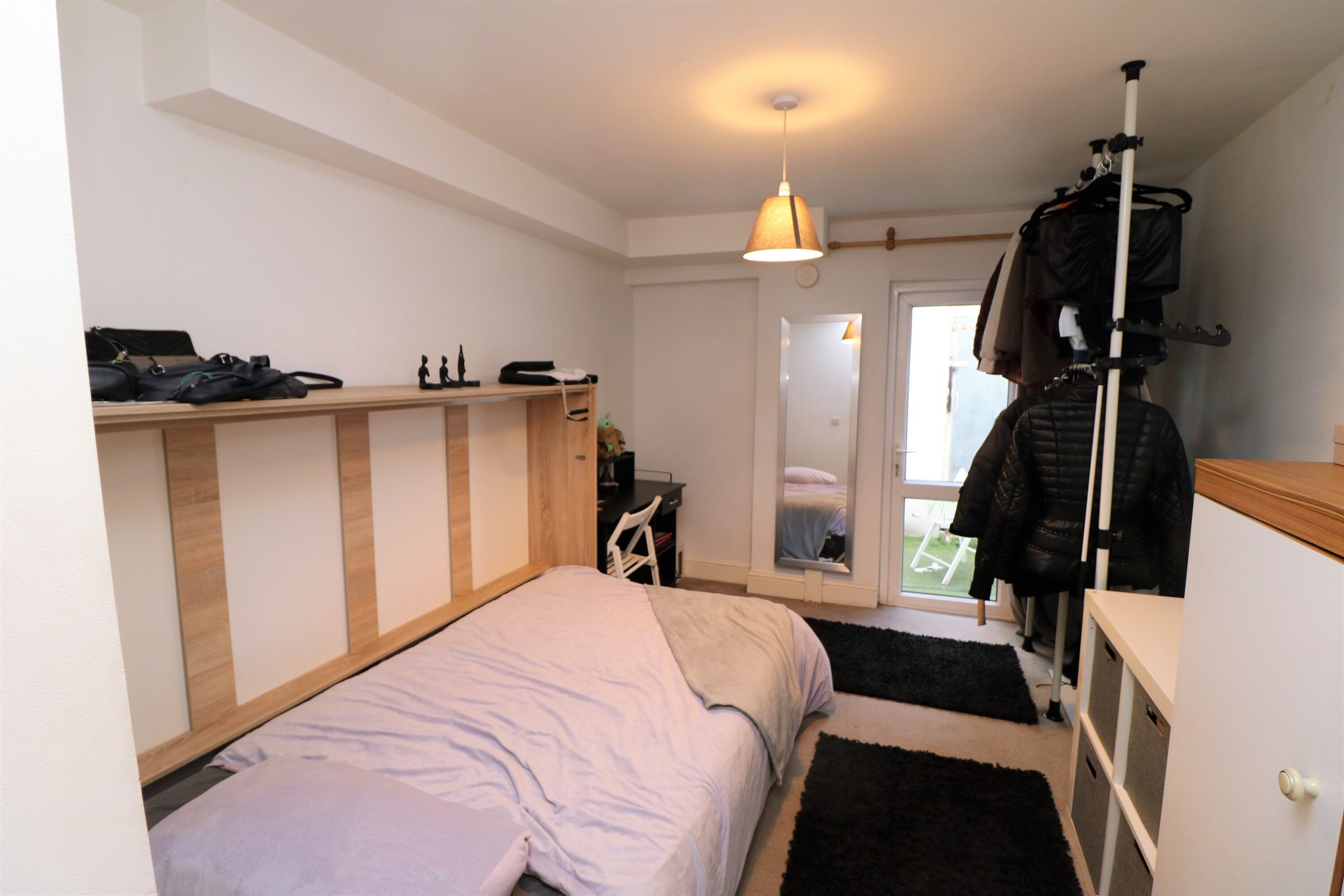 This self contained studio is quite unique. Arranged over two levels, bedroom/living space with a small patio area with stairs leading down to the basement area of a spacious kitchen and shower room. The lower level has underfloor heating and good storage. Not just a studio.