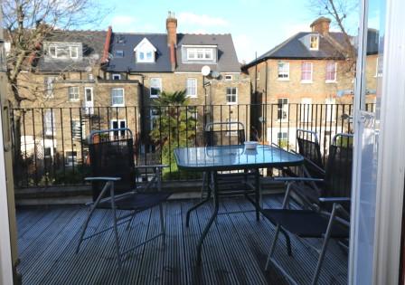 This top floor split level flat offers two bedrooms, one bathroom a bright and spacious living room with a wonderful eat in kitchen with a delightful decked terrace leading off.